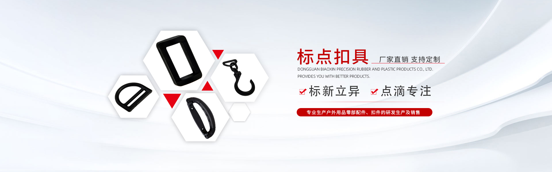 塑料扣具生产的工艺流程塑料制扣具整体生产流程:原料选择:所有塑料都是由石油提炼出来的。塑料制品的原料在国内市场主要有以...【了解详情】扣具主要分类2017-07-31